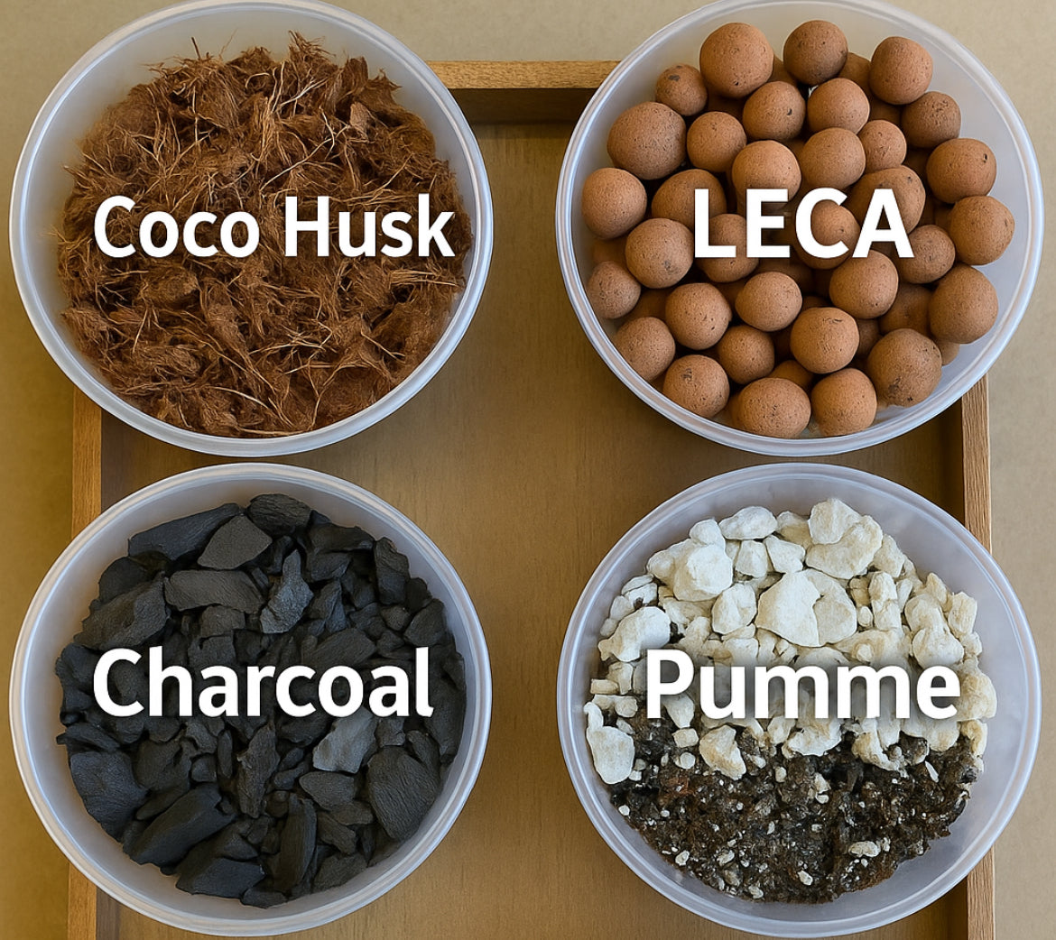 Crafted with a balanced mix of coco husk, horticultural charcoal, pumice, and leca.